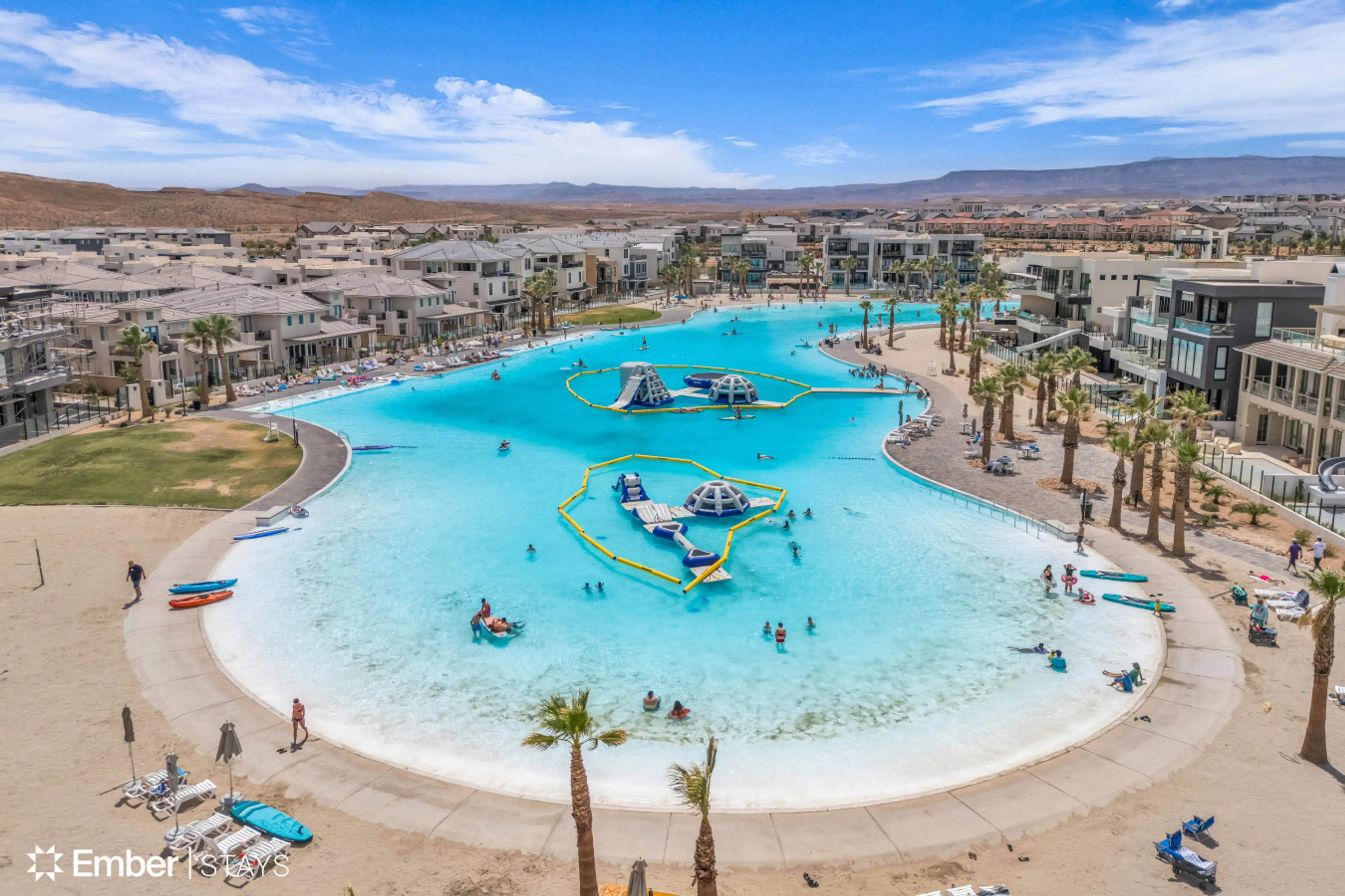 Anna Cabana is a professionally designed Desert Color retreat located within the resort community and minutes from the iconic two point five acre lagoon. This spacious three level home sleeps up to twenty six guests and features a private hot tub, multiple entertainment zones, and expansive gatherin...